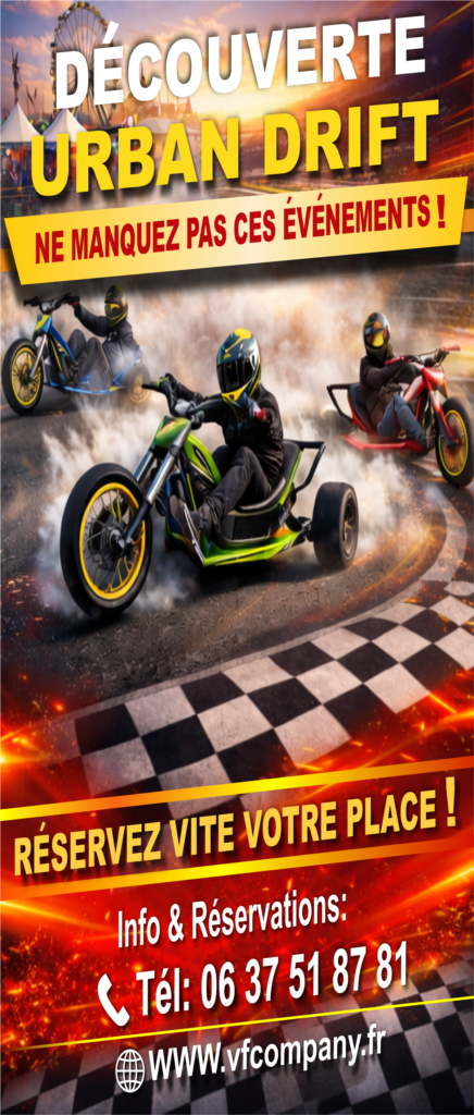 En résumé, l’animation MEGADRIFT peut s’adapter à tous les lieux intérieurs et extérieurs « parc d’expositions, salle des fête, parking, sous terrain, place publique etc.. » Cette nouvelle animation sans nuisances sonores et olfactives permet de